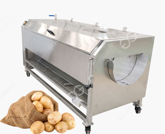 Potato peeling machine is made of all stainless steel and equipped with automatic spraying device, which is clean and hygienic and meets hygienic standards.